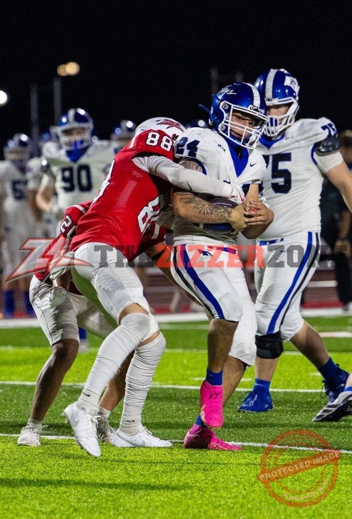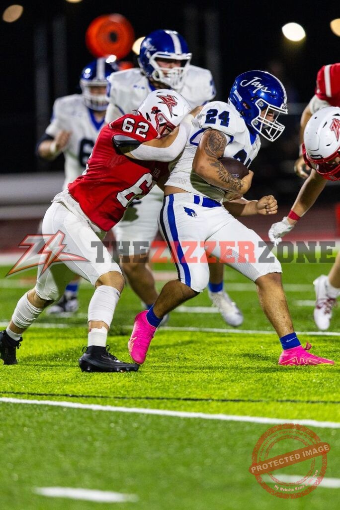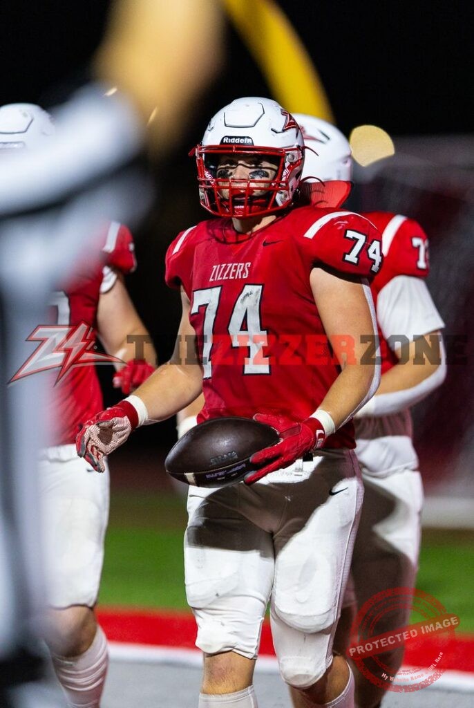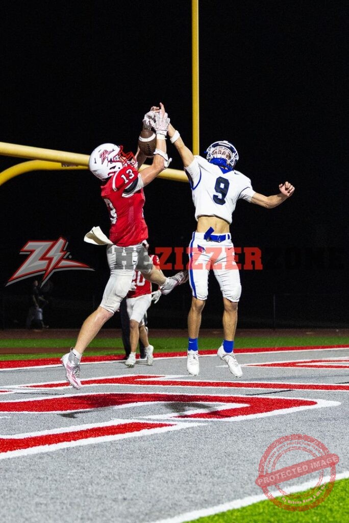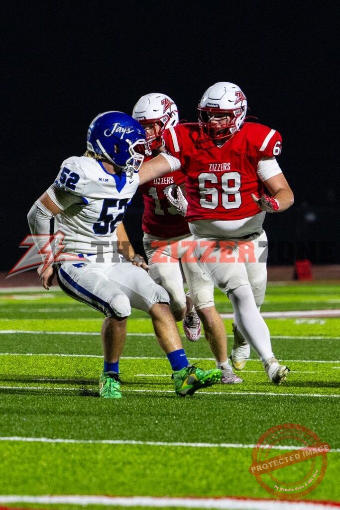 Zizzers will receive it at the 15, Taylor blasts to the 37. Taylor gets stopped in the backfield. Illegal procedure Zizzers. Ball on the 30. Taylor finds a gap and blasts to the Bluejay 46. Taylor blasts to the 19. Taylor gets 2. Taylor gets to the 10. Miller keeps for the first down on the 8. Taylor fights to the 5. Miller fakes to Taylor and zips for 3 but holding moves it back to the 15. Miller to Taylor complete at the 9. Miller to Due complete and he gets to the 3. Taylor gets the TD! Cobb’s extra point is blocked. 6-0, 5:37 left.