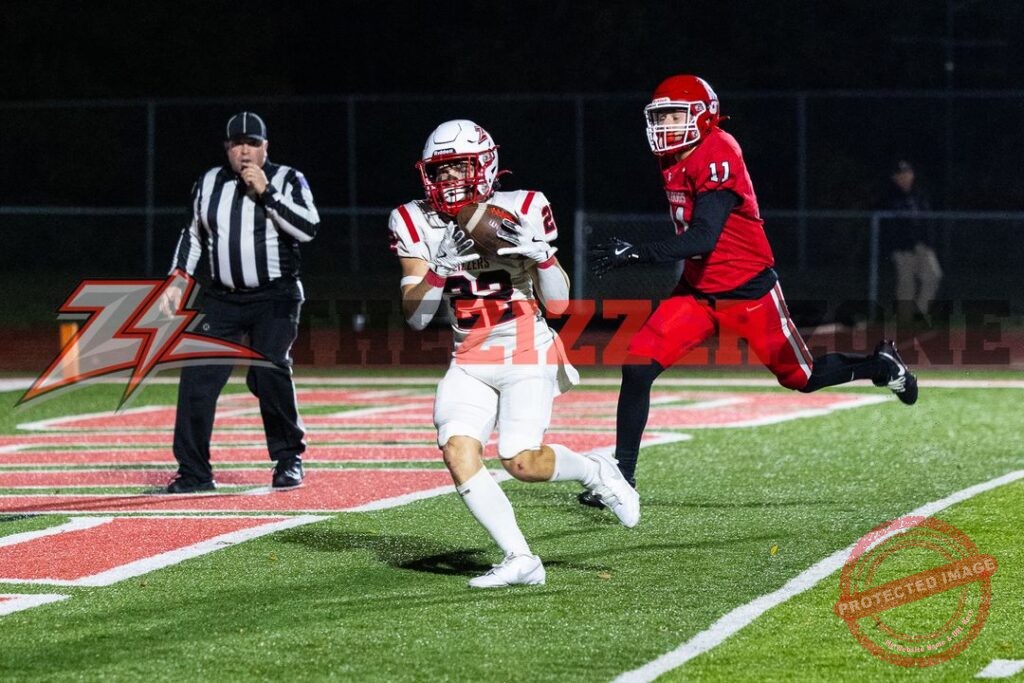 CJ kickoff to Maupin on the 18. First down on the 20. Miller to Taylor complete to the 28. Taylor gets the first down on the 31. Miller long to Moore incomplete. Miller to Moore complete with good blocking from Taylor. 3rd and 6 on the 35. Miller to Due complete at the 40. 4th and 2. Miller keeps but he’s short. … No he’s good! Zizzers first down on the 41. Trick play Miller to Lawson long, complete. Penalty: Zizzers unsportsmanlike moves it back to the 47. Miller to Moore incomplete. Miller to Taylor incomplete under pressure. Miller to Taylor long complete and he gets to the 14! Delay of game Zizzers, moves it back. Taylor gets to the 25. Miller to Maupin incomplete. Miller to Taylor complete who blasts to the 1! Taylor gets stopped. CJ penalty. Taylor gets the TD! Trick play Miller to Moore complete for the 2 point conversion! 25-24, 2:18 left.