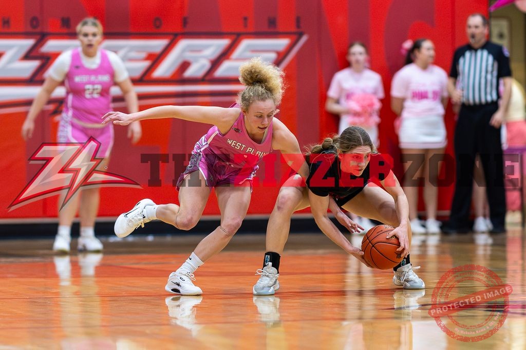 3rd qtr #LadyZizzers tied at 29 hosting Branson for the #PinkOutGame. Green to Peterson scores! 31-29. Hafer steals! Branson steals, travels. Peterson scores! 33-29. 5:46. Timeout Branson. Peterson putback and gets fouled! 35-29. Branson for 2. Branson for 2. Scharnhorst sinks a three! 38-33. Branson for 2. Branson putback. McWilliams at the line: sinks 2. 40-37, 4:01. Branson for 2. Branson steals and scores. 40-41. Zizzers steal, Branson steals. Timeout 3:08. Branson gets 2 ft’s. 40-43. Green at the line: sinks 2. 42-43. Green blocks a shot! Green sinks a three! 45-43, 1:45. McWilliams sinks a three! 48-43, 1:20. Branson for 2. Shrubb blocks a shot! Branson gets a ft. Peterson at the line: sinks 2! 50-46. Green steals! Peterson at the line: sinks 1. Green putback but foul “over the back” cancels it. 51-46. Green blocks a shot! Zizzers get the lead! End of the qtr.