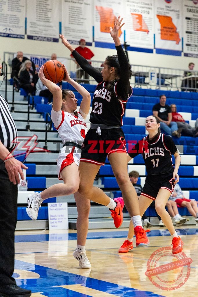 3rd qtr #LadyZizzers lead 23-15 in the DISTRICT SEMIFINALS @ Hillcrest vs McDonald County Lady Mustangs. Mustangs for 2. Peterson drives and gets fouled. Peterson gets a ft. 24-17, 6:42. McWilliams drives and gets fouled. McWilliams at the line: sinks 2. 26-17. Hafer to Peterson sinks a three! 29-17. Timeout Mustangs. McWilliams sinks a three! 32-17, 4:47. Mustangs for 2. Peterson scores! 34-19. Hafer to Green scores! 3:27. 36-21. Mustangs get 2 fts. Scharnhorst to McWilliams sinks a three! 39-23. Green steals. Green at the line: sinks 1. 40-23, 1:52. Shrubb to Scharnhorst sinks a three! 43-23. Hafer rebounds. Shrubb sinks a three! 46-23. End of the quarter.